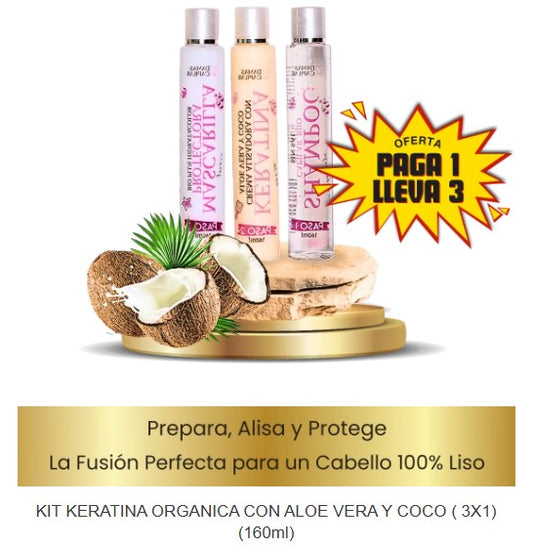 Keratina Orgánica con Coco y Aloe Vera - Kit de 3 Pasos (160ml)
