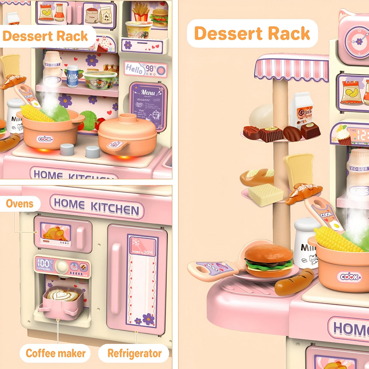 🧸 Incluye: Ollas, sartenes, frutas, verduras, utensilios, comiditas y hasta estante para postres. ¡Un mundo de imaginación! 🌈🍓