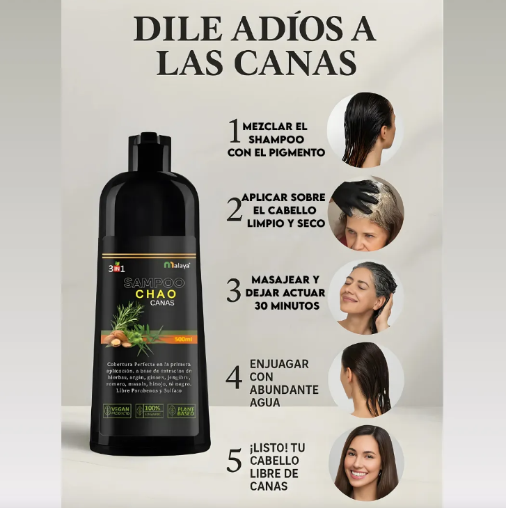 🧴✨ SHAMPOO CHAO CANAS – Tinte con Extractos Herbales • SIN AMONÍACO